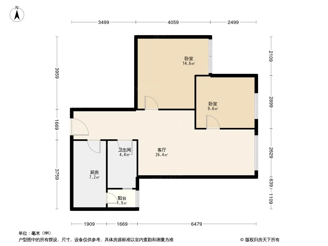 户型齐全,主打户型方正,双阳台二居