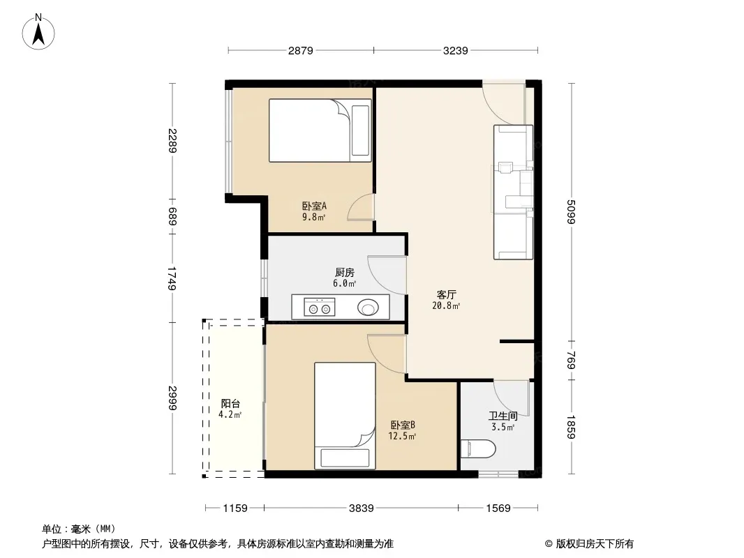 户型齐全,主打明厨,明卫,客厅朝南,全明格局二居