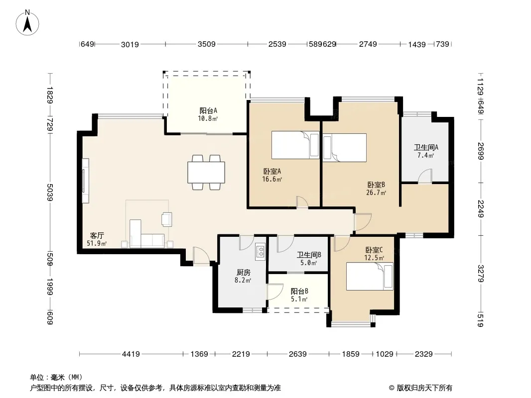 都城雅颂居 3室2厅 北