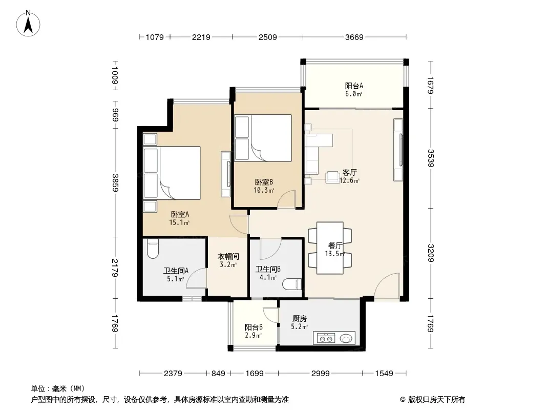 户型齐全,主打明卫,独立衣帽间,双阳台二居