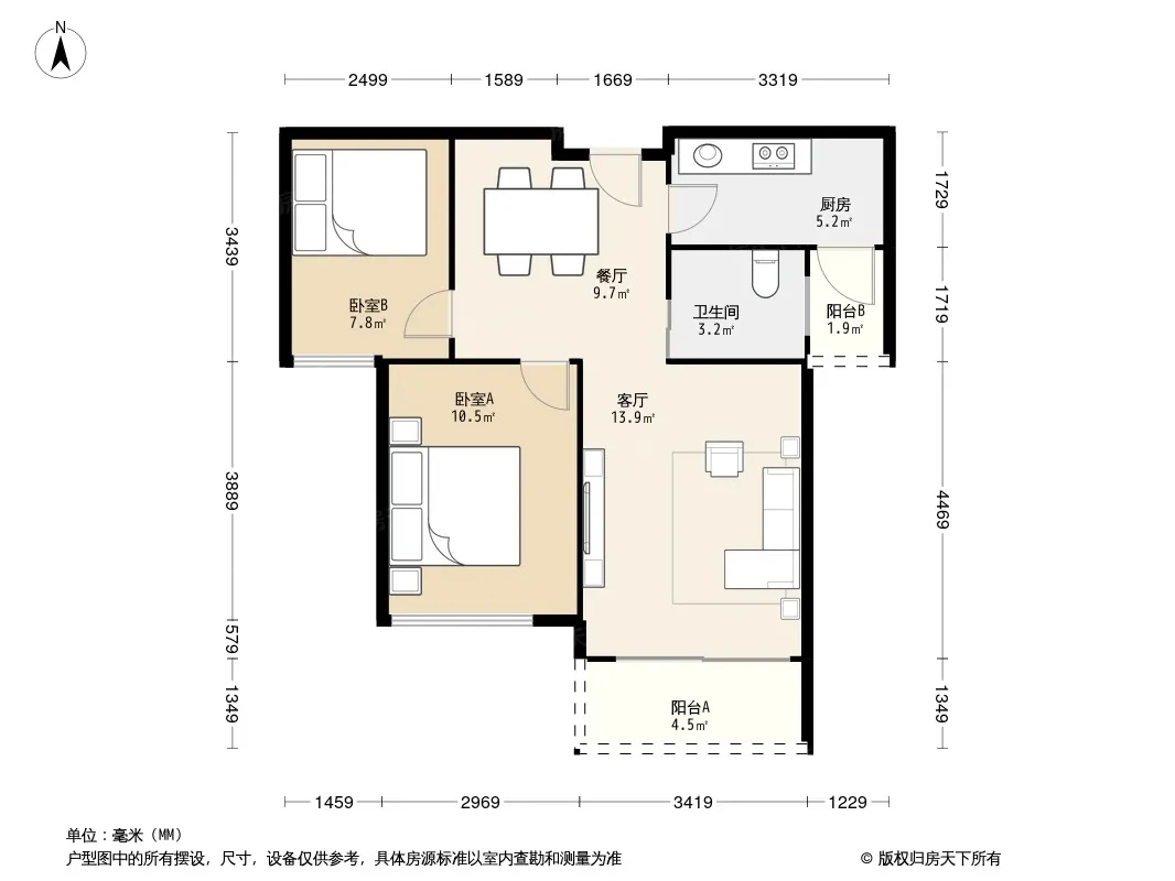 户型齐全,主打双阳台,双卧朝南,主卧朝南二居