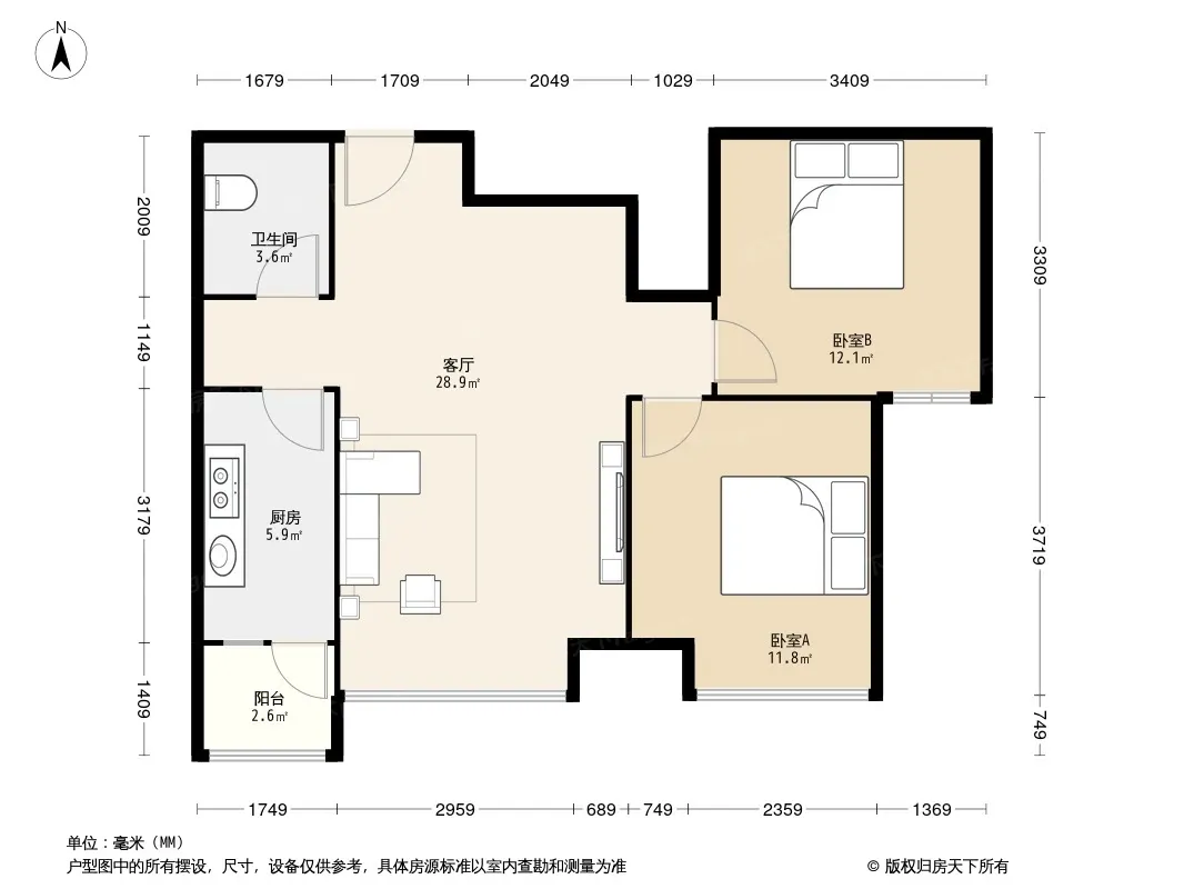 户型齐全,主打明厨二居