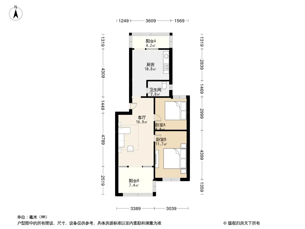 户型齐全,主打明厨,双卧朝南,主卧朝南二居