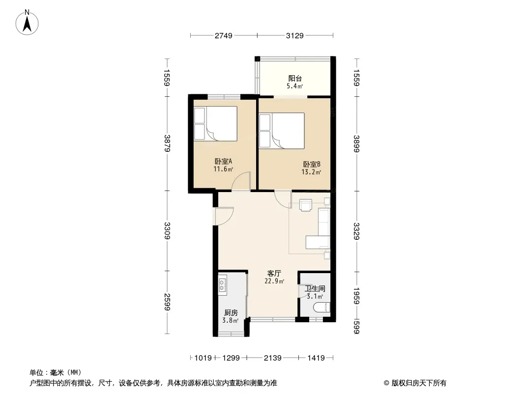 户型齐全,主打明厨,客厅朝南二居