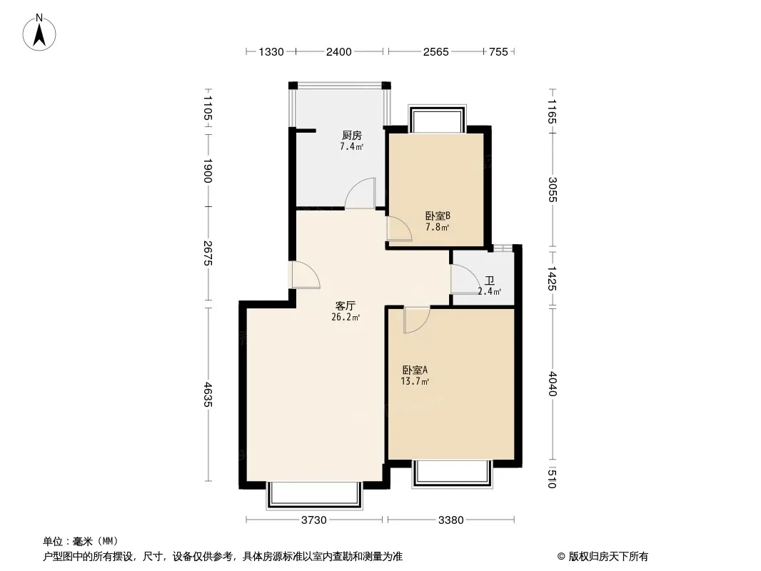 户型齐全,主打户型方正,明厨,明卫,客厅朝南,全明格局二居