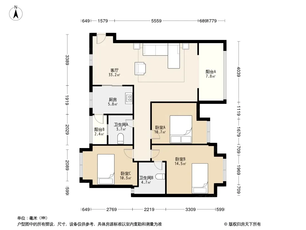 晶宝维吉尼亚 3室2厅 东南
