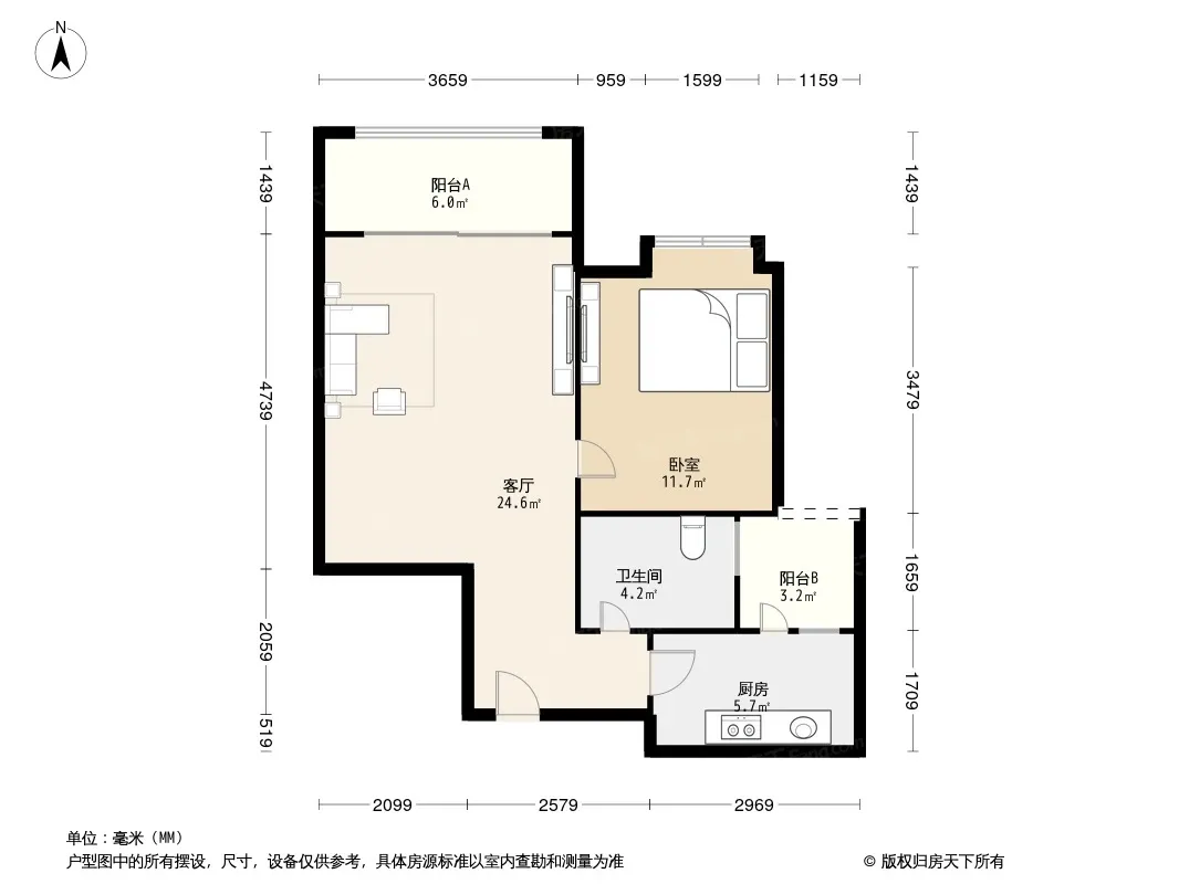 晶宝维吉尼亚 1室1厅 东南