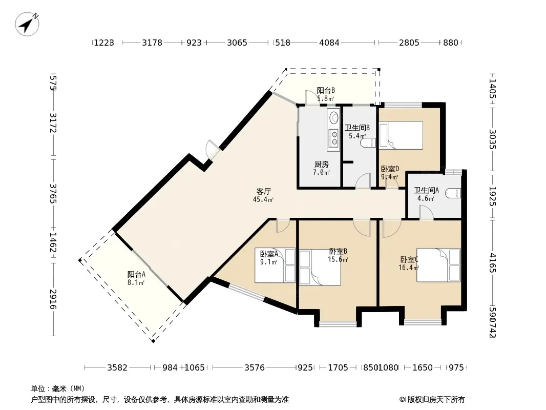 东方怡景 4室1厅 东南