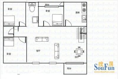 户型齐全,主打明卫,明厨,客厅朝南,双阳台三居