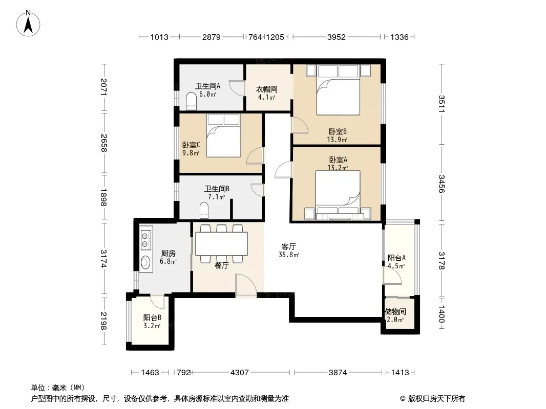 户型齐全,主打独立衣帽间,明卫,明厨,客厅朝南,全明格局,双阳台,双卧朝南三居