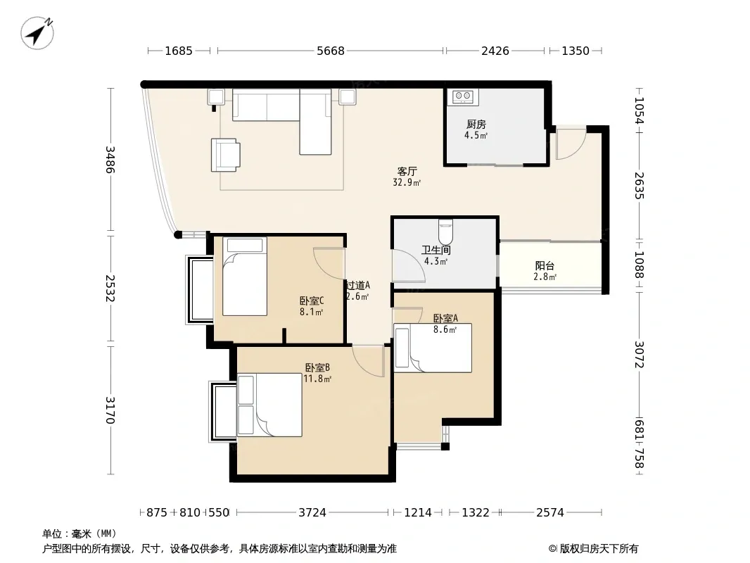 *获取完整户型报告,同时会有免费语音讲解服务