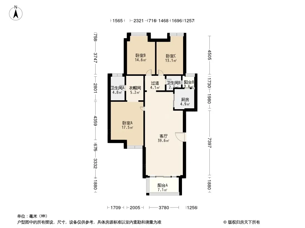 户型齐全,主打户型方正,独立衣帽间,明卫,客厅朝南,双阳台,主卧朝南三居