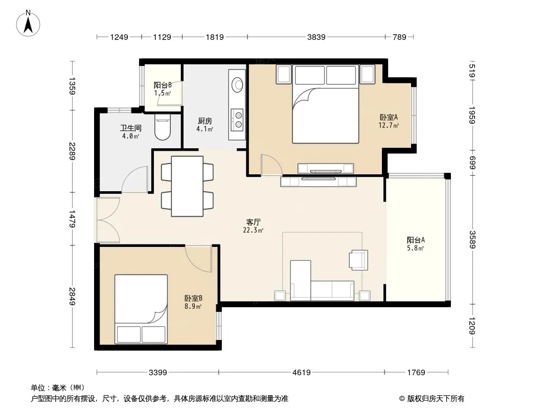 户型齐全,主打二居