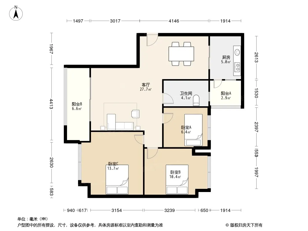 嘉楠美地 3室2厅 南