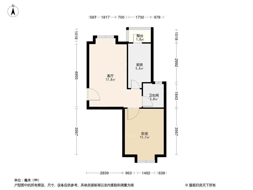 户型齐全,主打明厨,客厅朝南二居
