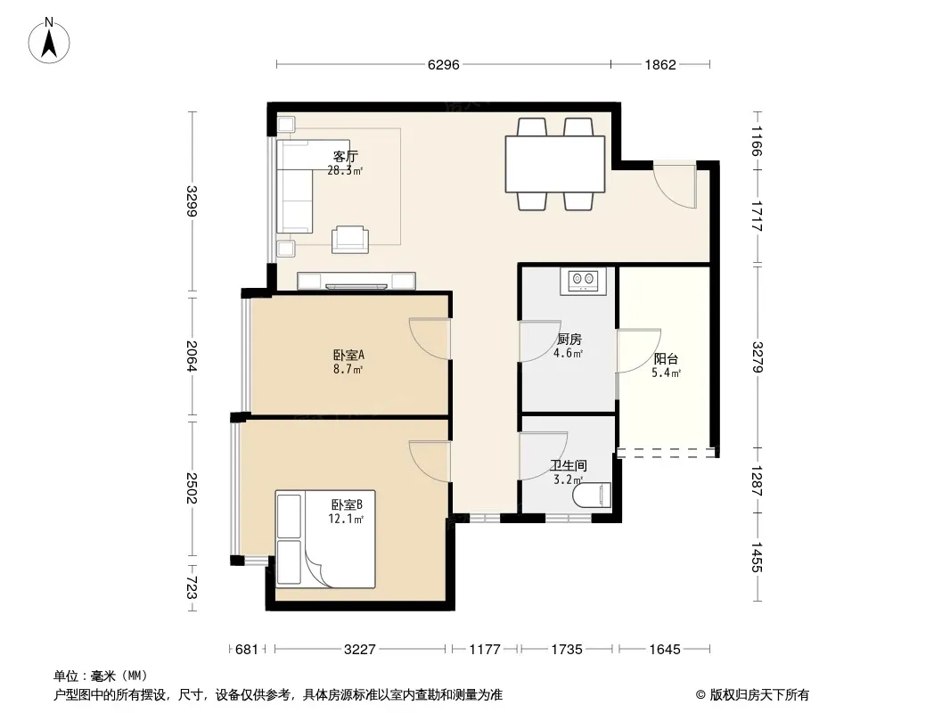 户型齐全,主打户型方正,明卫,明厨,客厅朝南,全明格局二居