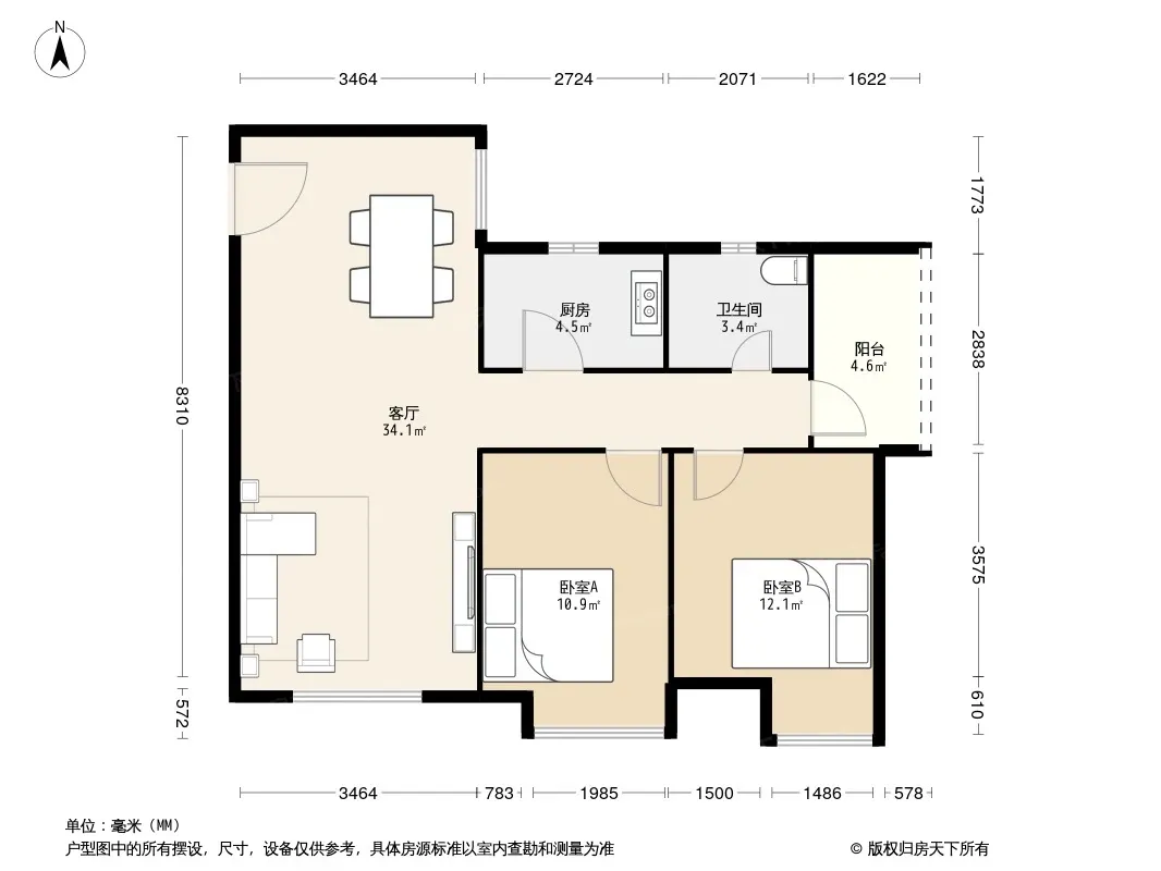 户型齐全,主打户型方正,明卫,明厨,客厅朝南,全明格局二居