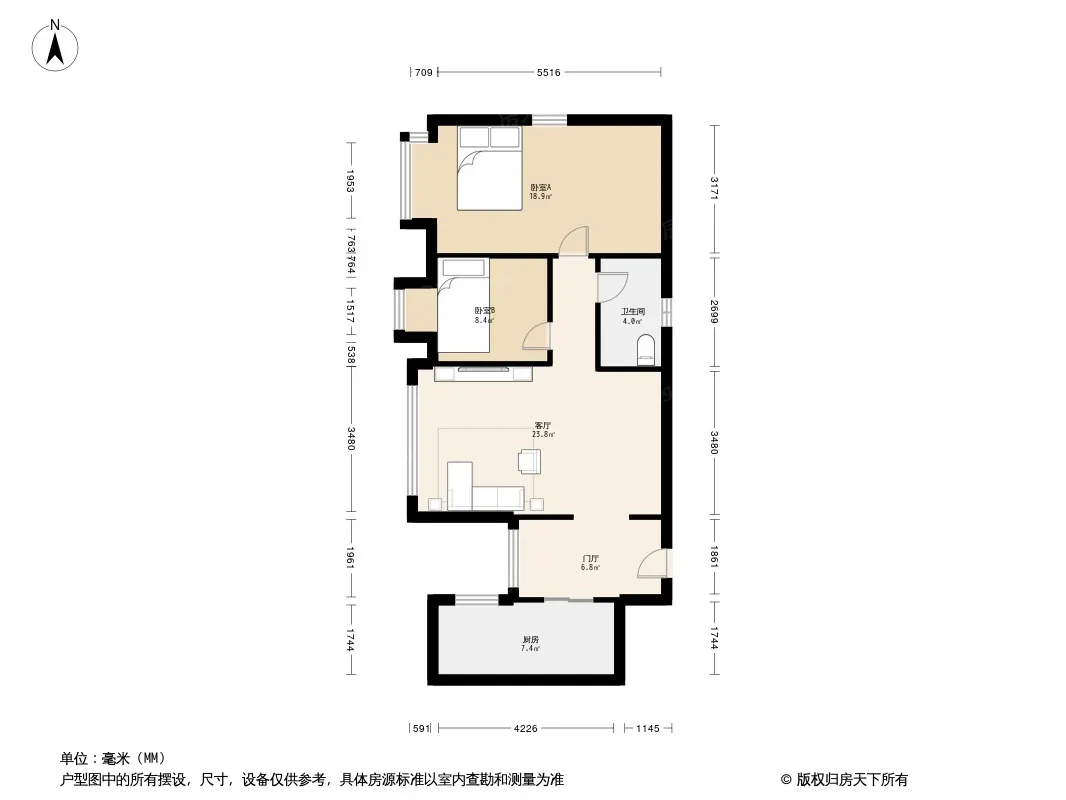 户型齐全,主打户型方正,明卫,明厨,客厅朝南,全明格局二居