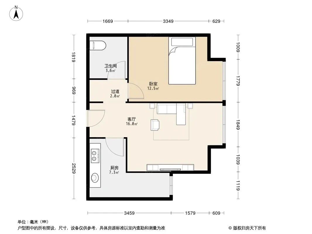 户型齐全,主打客厅朝南二居