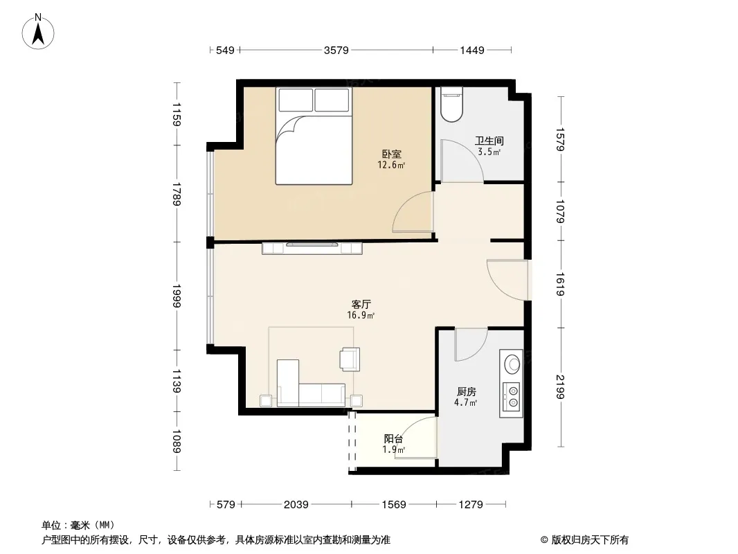户型齐全,主打客厅朝南二居