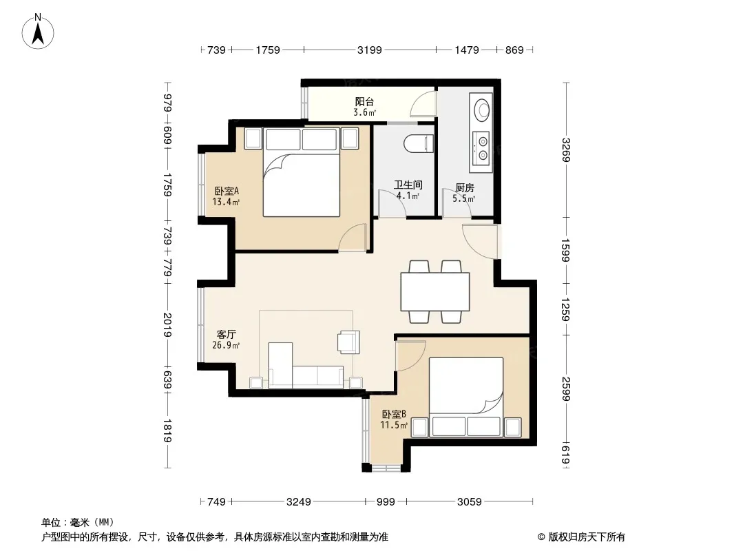 户型齐全,主打客厅朝南二居