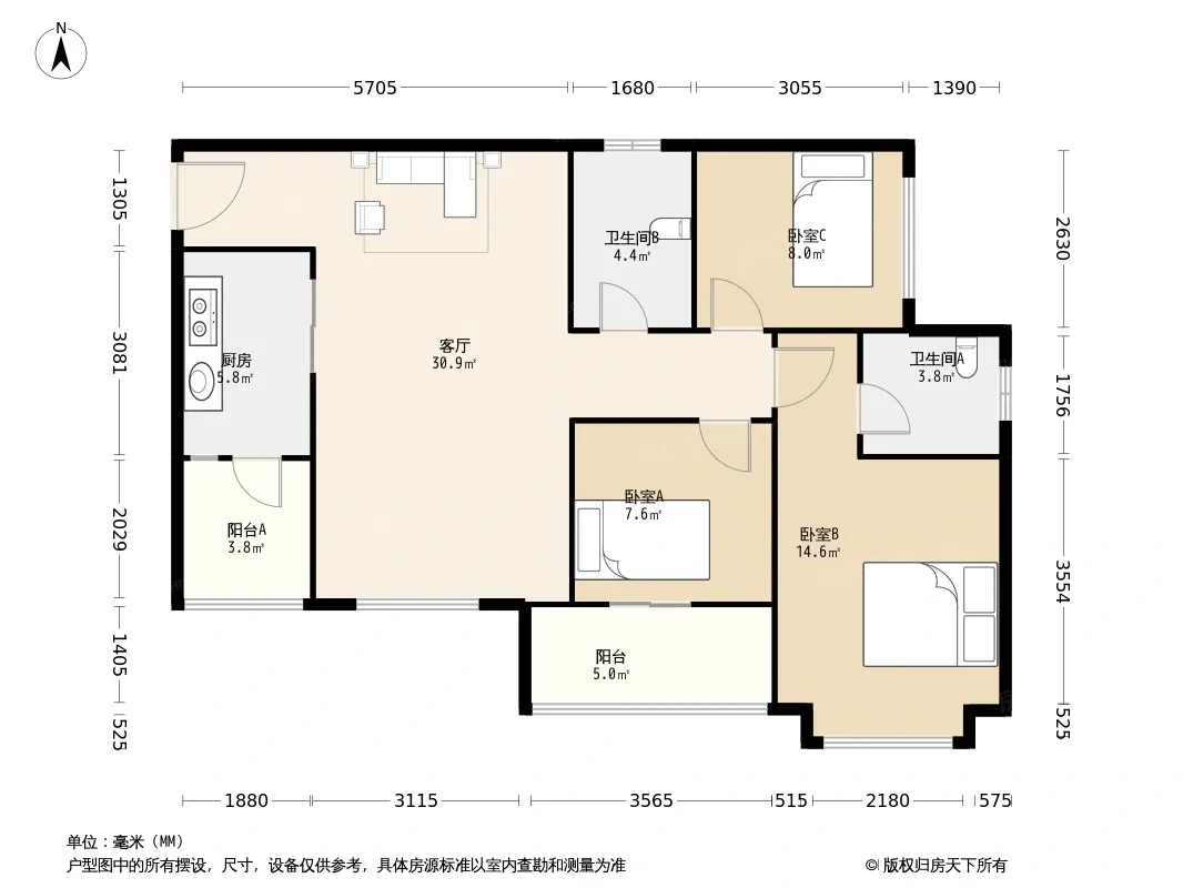 远洋朗郡 3室1厅 东南