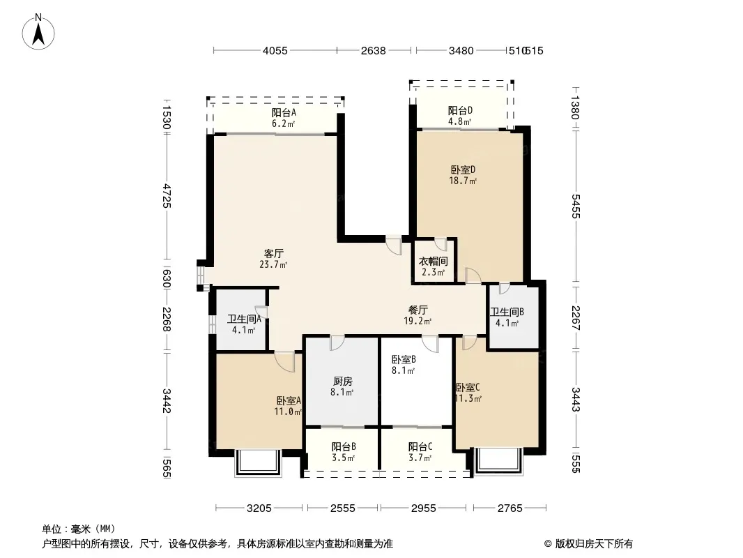 户型齐全,主打明厨,客厅朝南,主卧朝南,双阳台四居