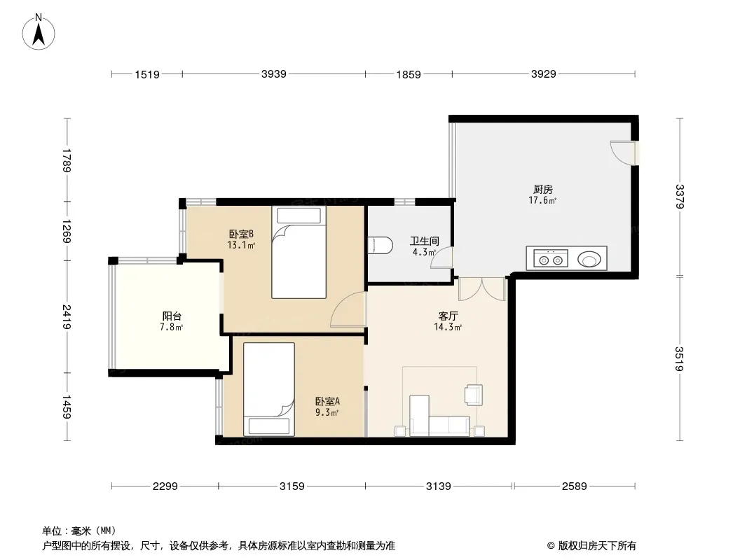 户型齐全,主打户型方正,客厅朝南,双卧朝南,主卧朝南二居