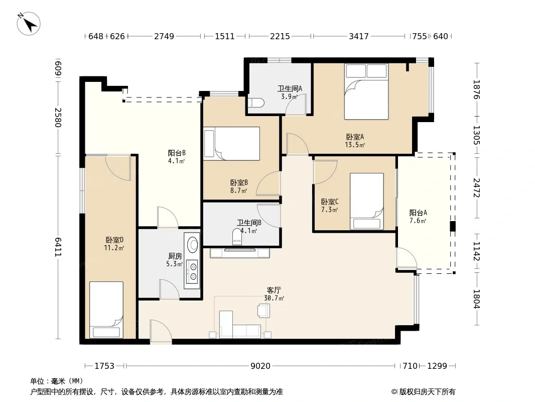 *获取完整户型报告,同时会有免费语音讲解服务