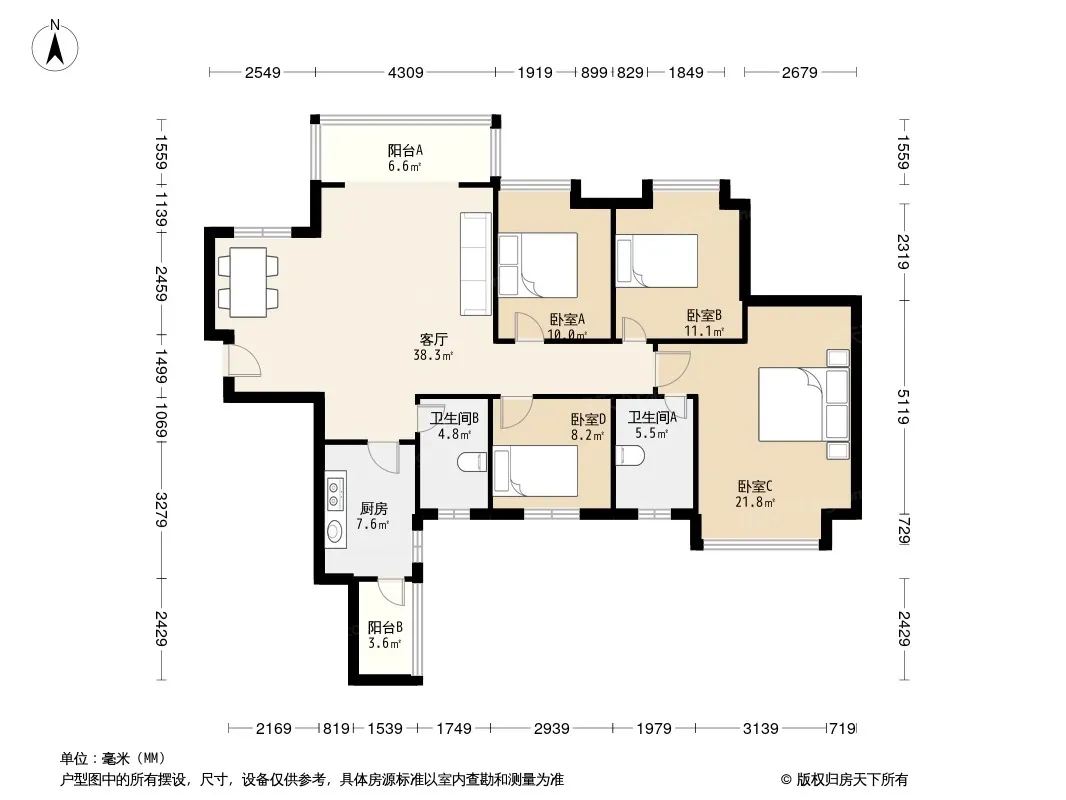 军安卫士花园 4室1厅 北