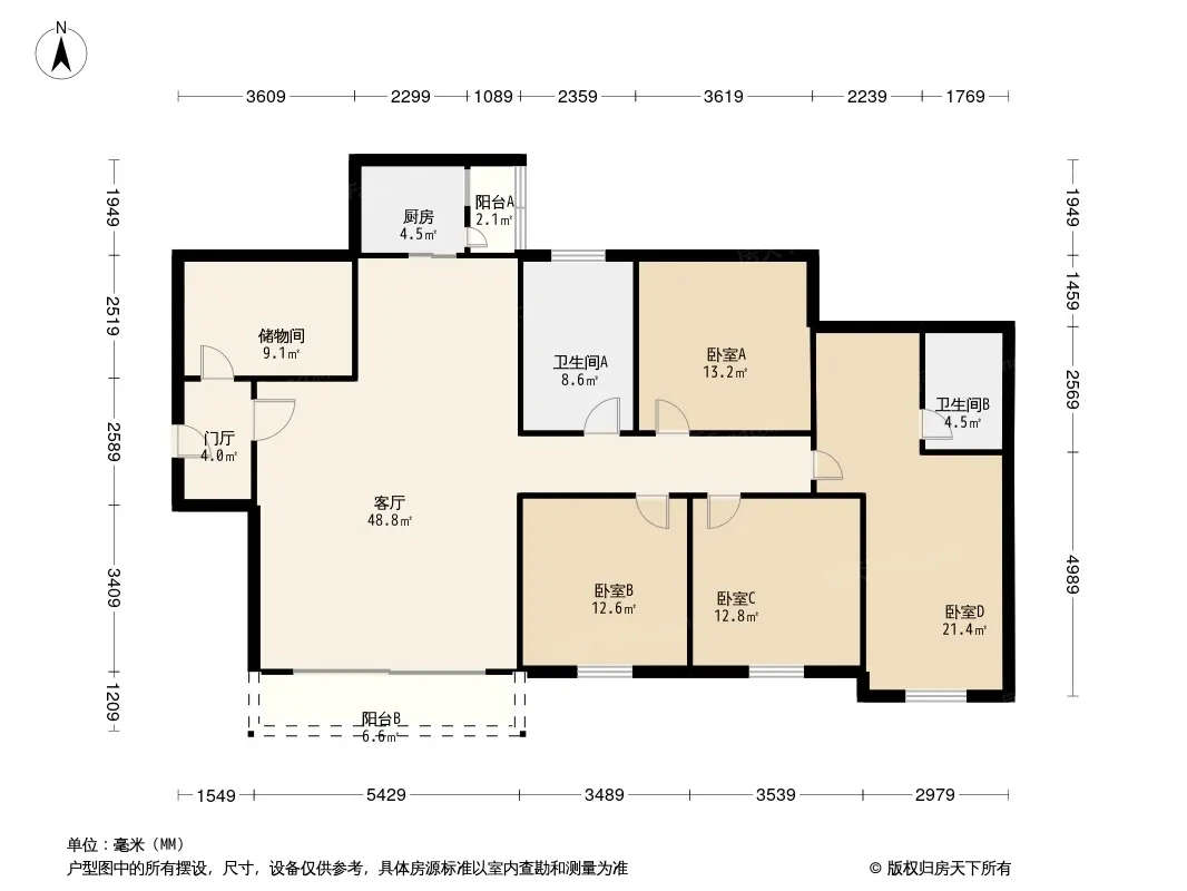 军安卫士花园 4室2厅 北