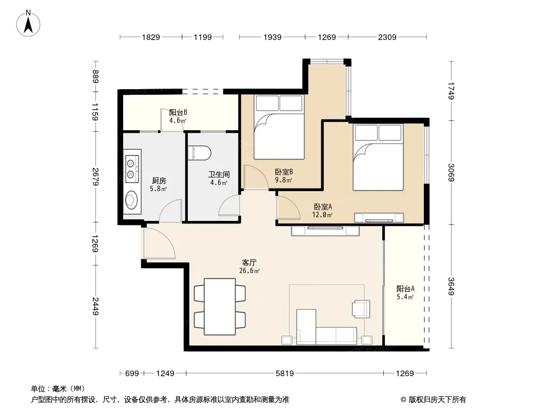 户型齐全,主打户型方正,明卫,客厅朝南,双阳台三居