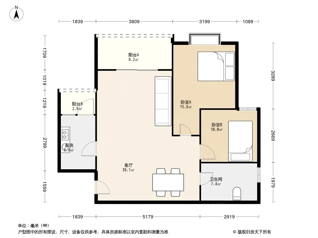 户型齐全,主打户型方正,明卫,客厅朝南,双阳台三居