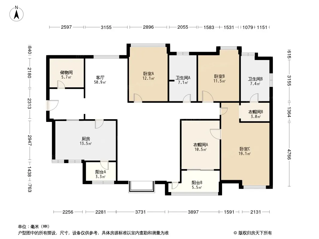 户型齐全,主打户型方正,明卫,独立衣帽间,客厅朝南三居