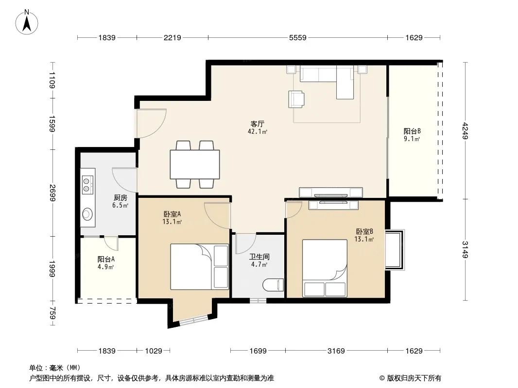 户型齐全,主打双阳台,双卧朝南,主卧朝南二居