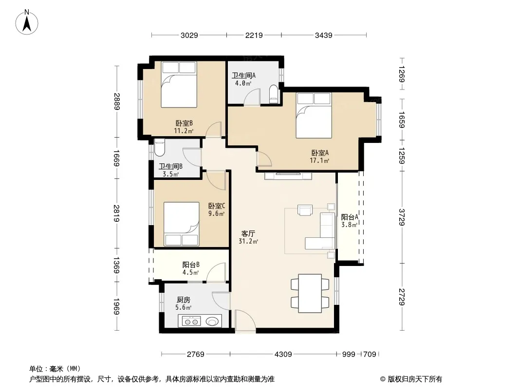 傲城 3室1厅 西北