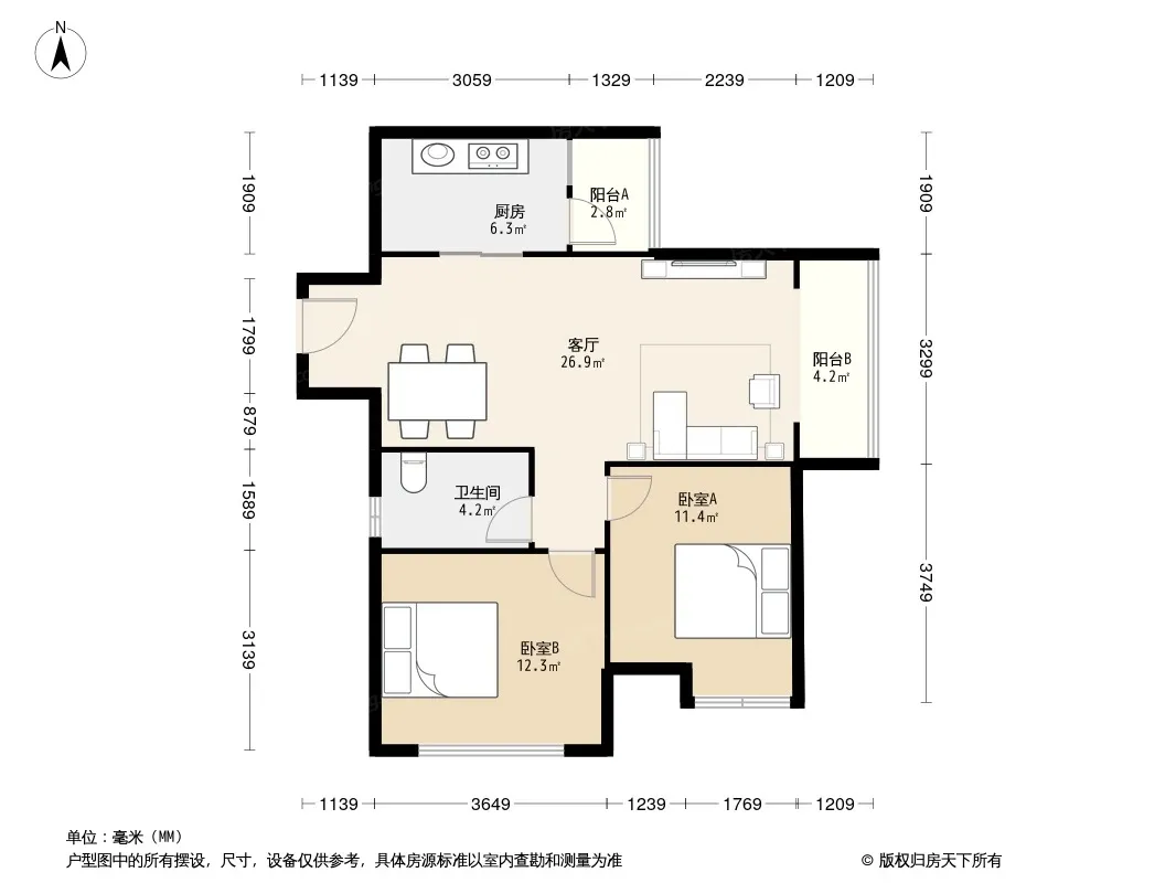 户型齐全,主打户型方正,明卫,客厅朝南,双卧朝南三居