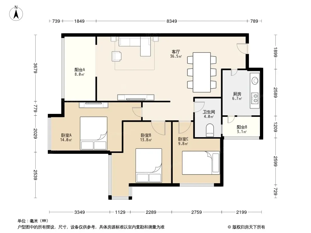 户型齐全,主打户型方正,明卫,客厅朝南,双阳台三居