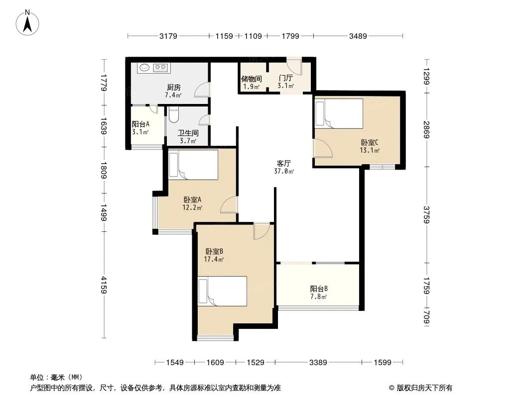 户型齐全,主打户型方正,明卫,客厅朝南,双阳台三居