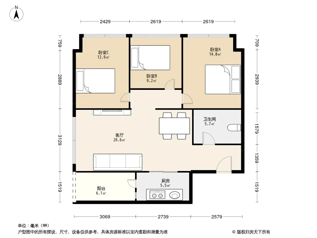 阳光100米娅中心二期 3室2厅 东