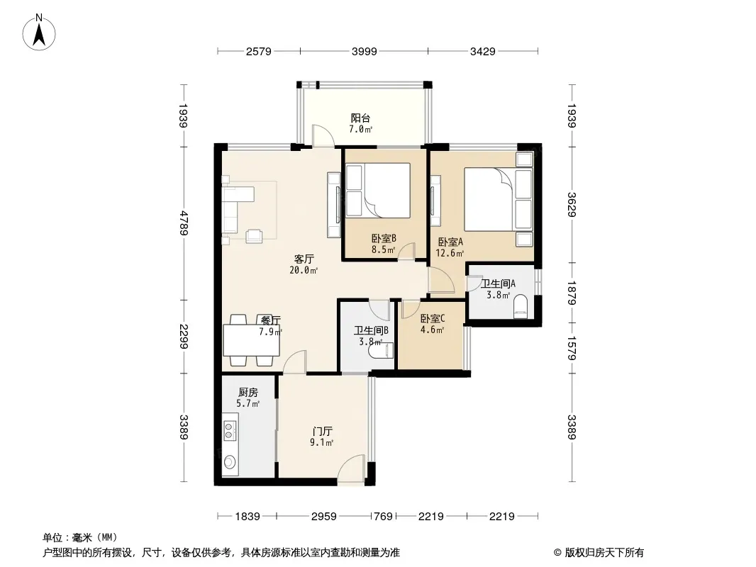 户型齐全,主打客厅朝南三居