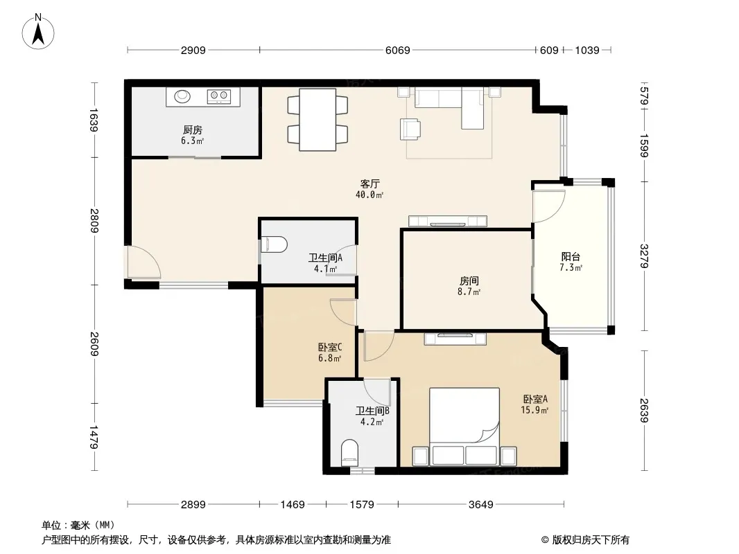 户型齐全,主打客厅朝南三居