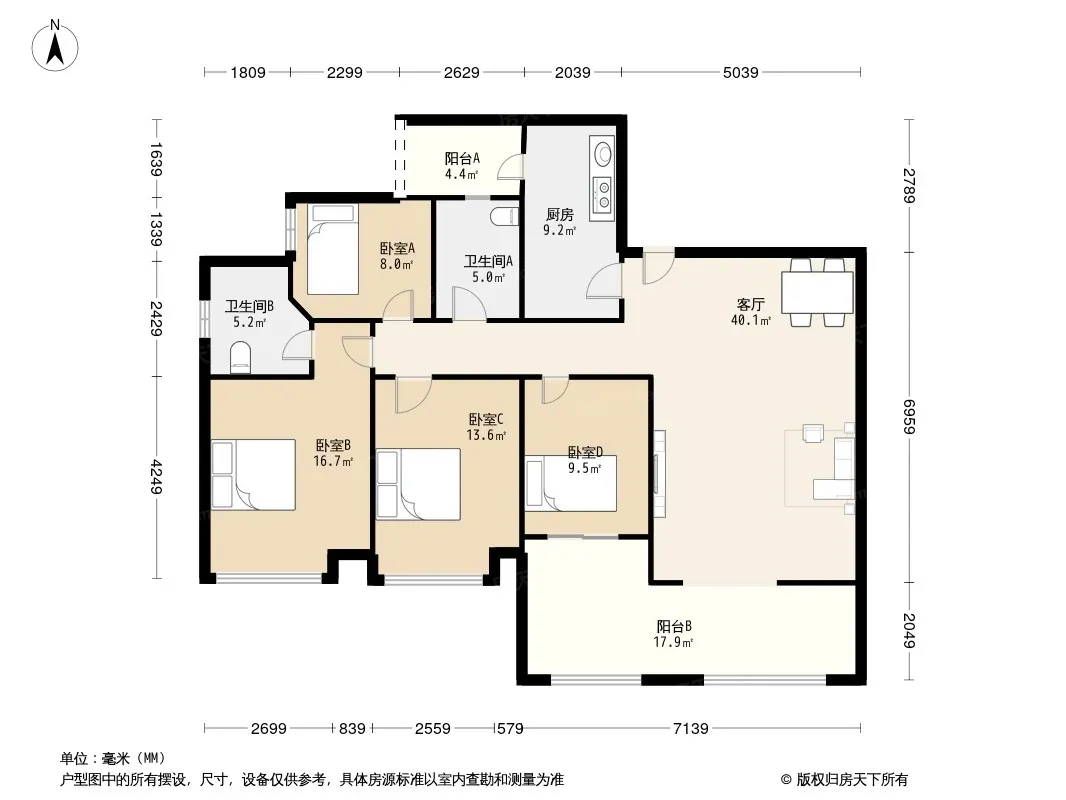 领馆国际城 4室2厅 南