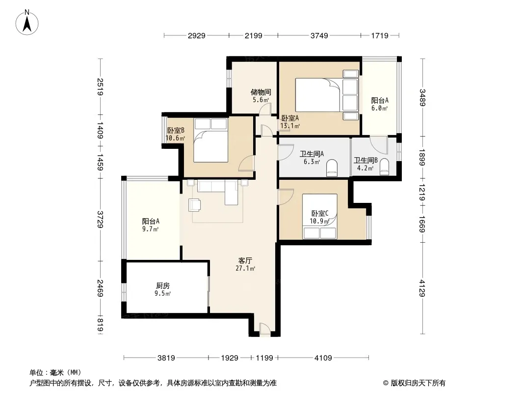传化国际新城 3室1厅 东南