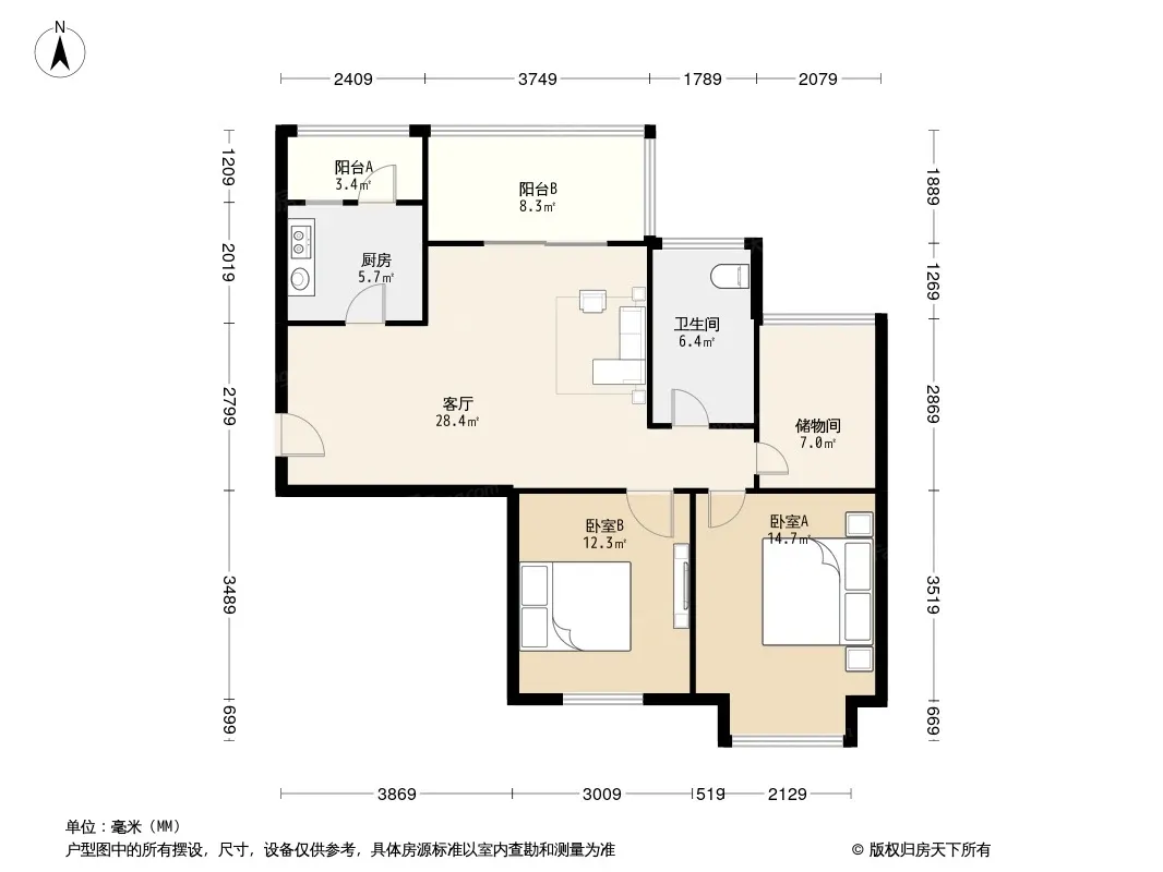 传化国际新城 3室1厅 北