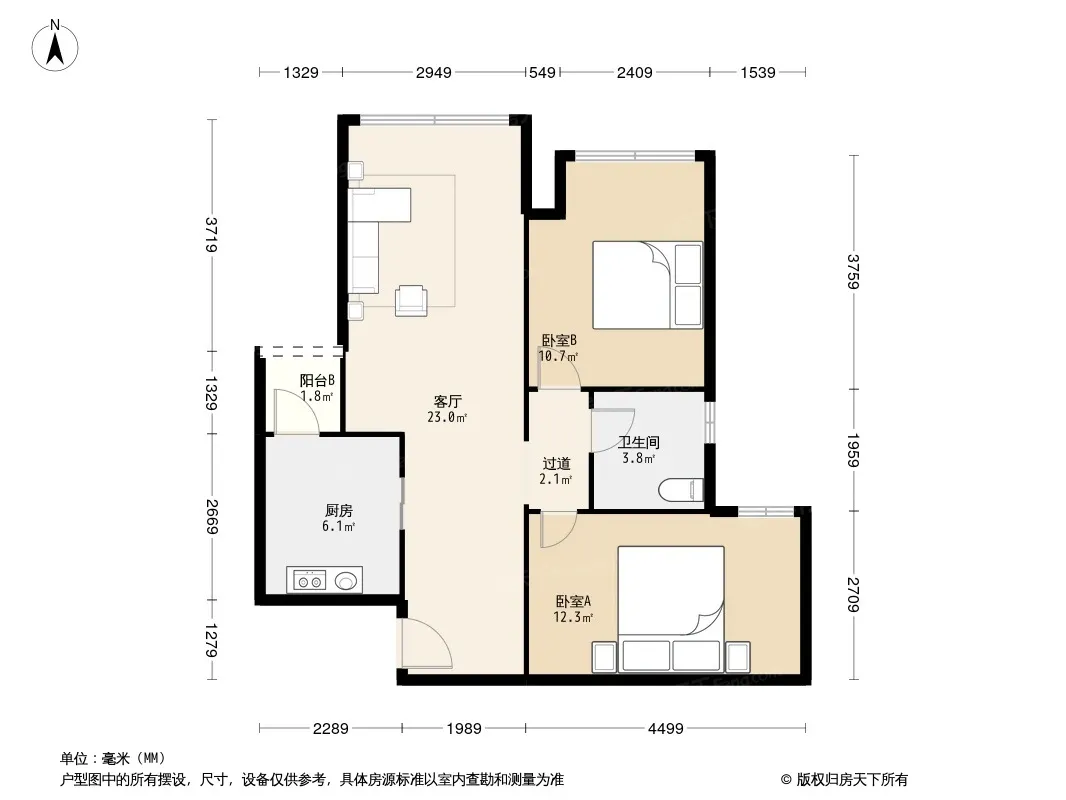 户型齐全,主打户型方正,双阳台二居