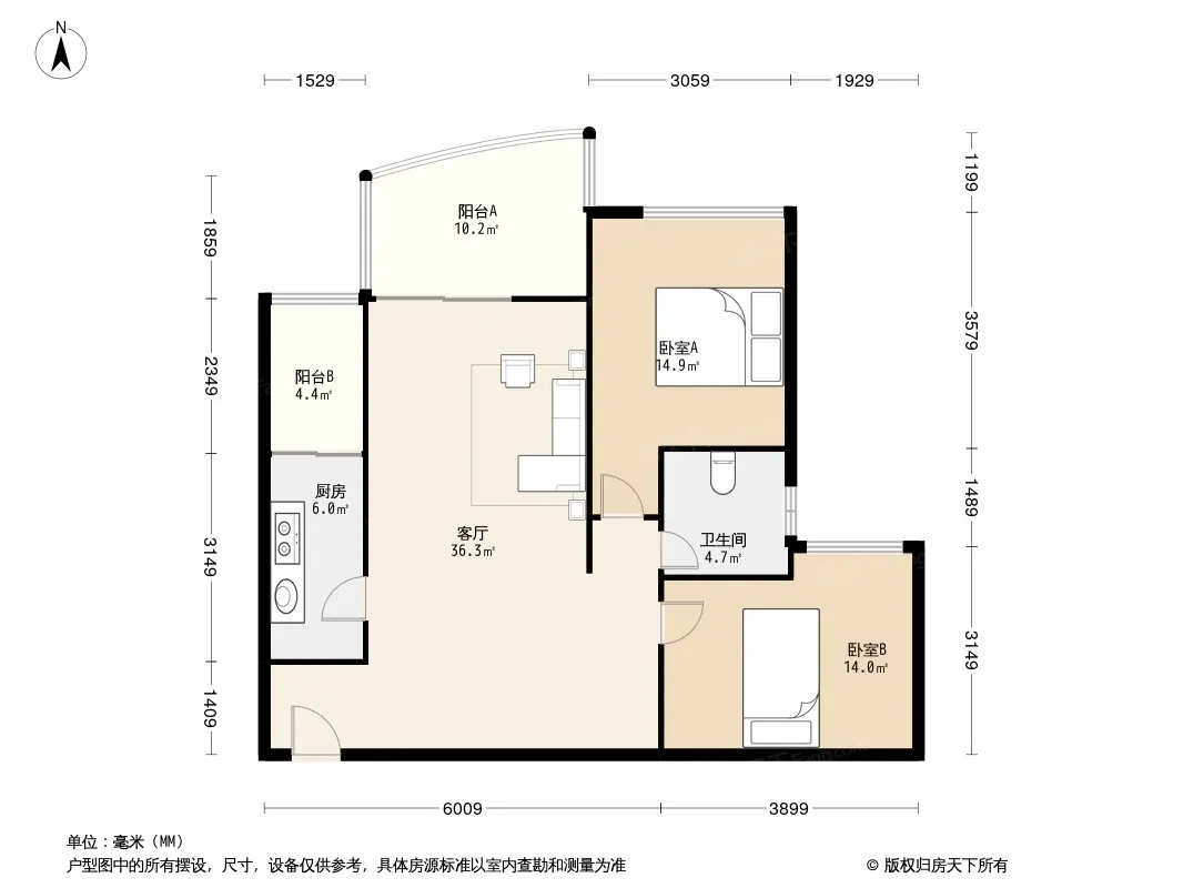 户型齐全,主打户型方正,双阳台二居