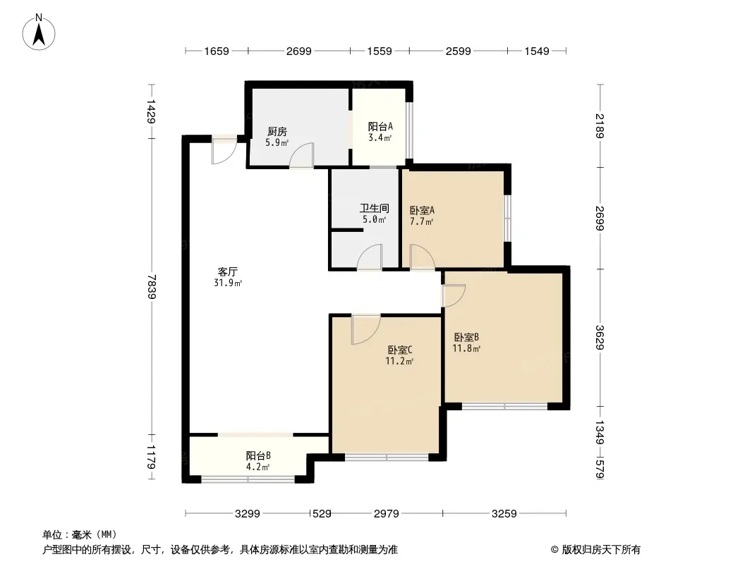 户型齐全,主打明卫,客厅朝南,双阳台,双卧朝南三居
