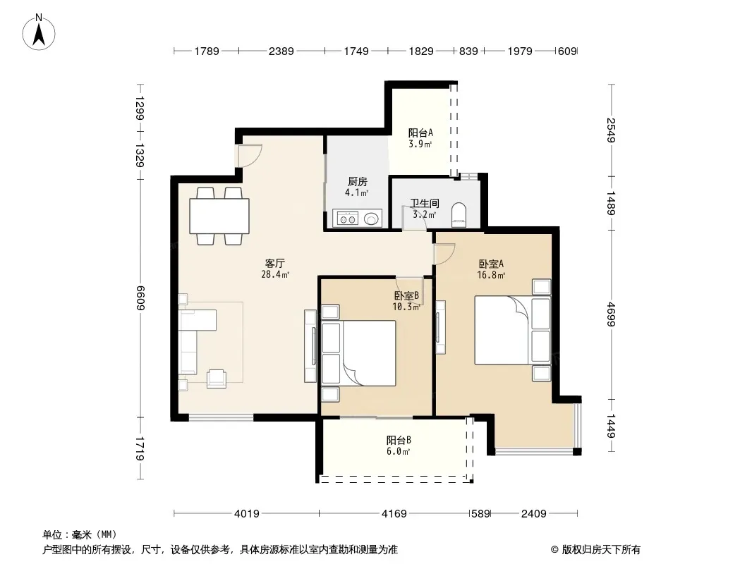 户型齐全,主打明卫,客厅朝南,双阳台三居