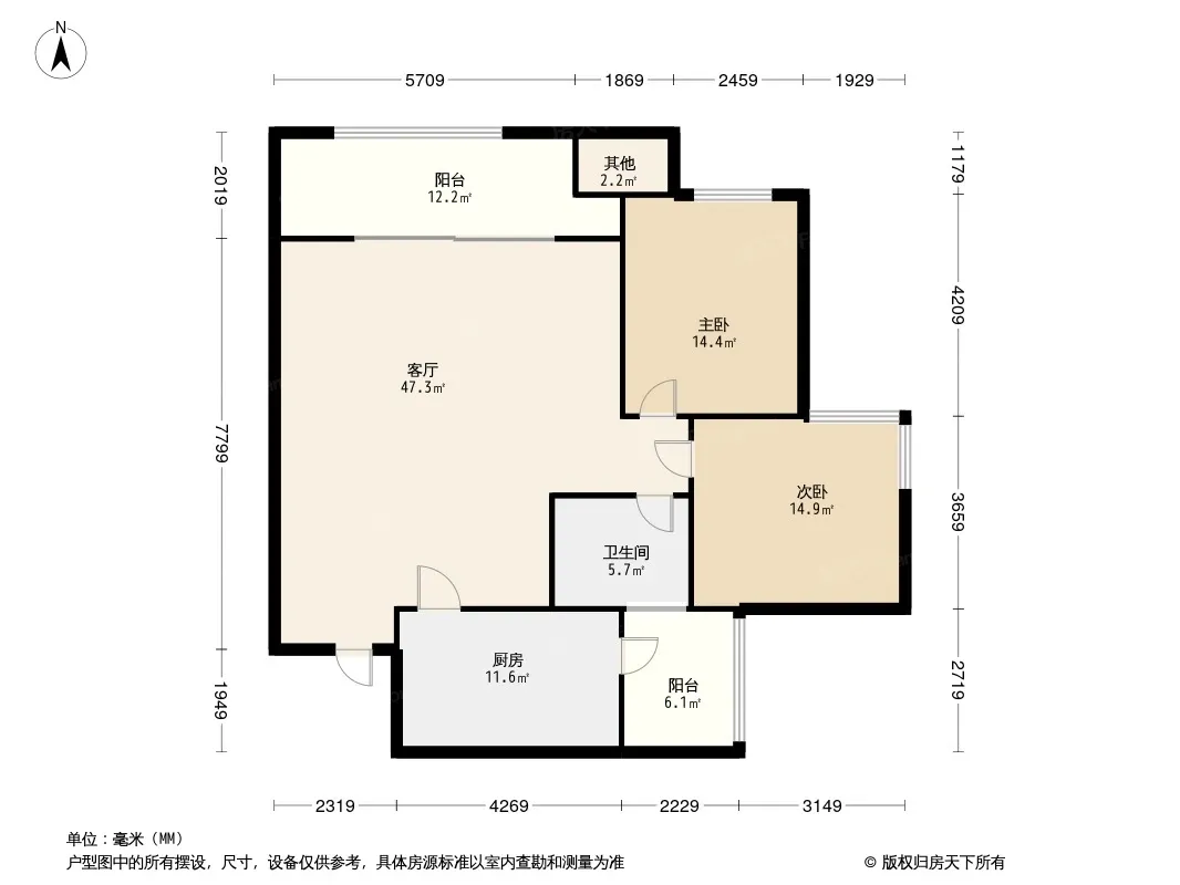 户型齐全,主打双阳台,双卧朝南二居